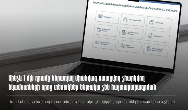 Ֆինանսների նախարարությունն առաջարկում է սահմանել հայտարարագրման ոչ ենթակա նվազեցվող եկամուտների...