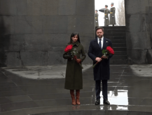 Ջեյ Դի Վենսը ծաղկեպսակ է դրել Հայոց ցեղասպանության զոհերի հիշատակը հավերժացնող հուշակոթողին, այնուհետև հյուրերը ծաղիկներ են դրել անմար կրակի մոտ և մեկ րոպե լռությամբ հարգել Հայոց ցեղասպանության անմեղ զոհերի հիշատակը: